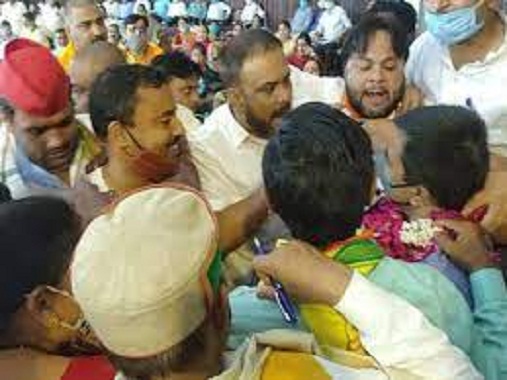 कानपुर पार्षदों और नगर निगम कर्मचारियों में फूलों को लेकर हुई धक्का-मुक्की