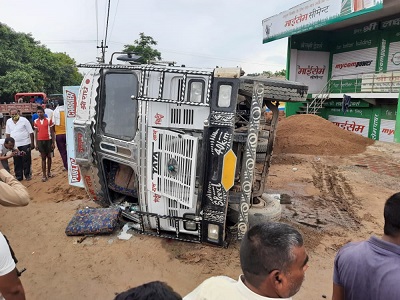 लखनऊ : मौरंग से भरा ओवरलोड डंपर अचानक पलटा, चालक की मौके पर हुई मौत