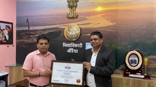 D.M.औरैया सुनील कुमार वर्मा को वर्ल्डबुक आफ रिकार्ड लंदन द्वारा किया गया सम्मानित