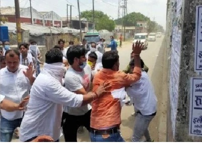इटावा के एसपी को भीड़ में मौजूद नकाबपोश ने जड़ा जोरदार थप्पड़