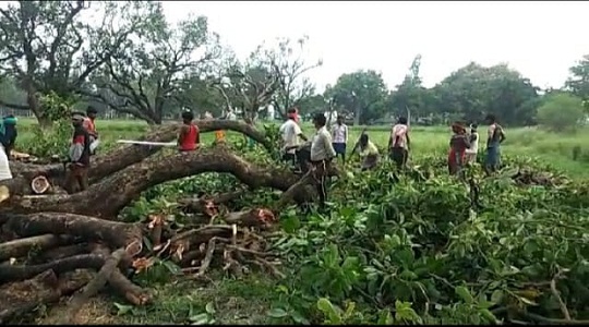 वन विभाग की मिलीभगत से रेंज में हो रही प्रतिबंधित आम के पेड़ों की कटान