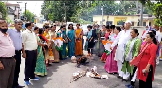 बढ़ती महंगाई को लेकर महिला कांग्रेस कार्यकर्ताओं ने केन्द्र सरकार का पुतला फूंका