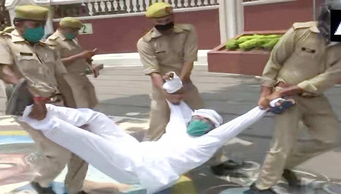 पुलिस पर उत्पीड़न का आरोप लगाकर लल्लू बहुखंडी आवास के गेट के पास खड़े हो गए। लाठियां बरसने के डर से कार्यकर्ताओं ने लल्लू के चारों तरफ घेरा बना लिया। मगर इस घेरे को तोड़कर पुलिस ने लल्लू का हाथ पकड़कर घसीट लिया। पुलिस की गाड़ी में भरकर लेकर चली गई। इसके बाद करीब 150 कार्यकर्ताओं ने भी हिरासत में ले लिया गया।