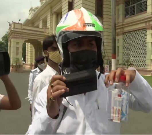 बिहार विधानमंडल का मानसून सत्र  सोमवार (26 जुलाई) को शुरू हुआ। इस दौरान विधानमंडल में सांकेतिक विरोध के तौर पर राष्ट्रीय जनता दल (राजद) के विधायक सतीश दास और मुकेश रौशन हेलमेट पहनकर सदन पहुंचे। उन्होंने अपने साथ मेडिकल किट भी ले रखा था। राजद विधायक ने कहा कि सदन में आने से डर लगता है, इसलिए उन्होंने हेलमेट पहन रखा है।