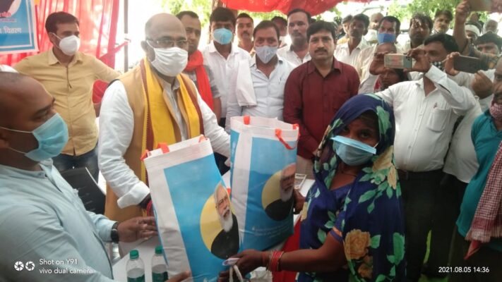 उन्होंने ने कहा आज देश और प्रदेश का गरीब, पिछड़ा, दलित, किसान, महिलायें, युवा व व्यापारी मोदी और योगी सरकार के काम और योजनाओं से संतुष्ट है आज उत्तर प्रदेश के लाखों परिवारों को पीएम गरीब कल्याण अन्न योजना के तहत एक साथ मुफ्त राशन वितरित किया जा रहा है गरीब कल्याण अन्न योजना मोदी सरकार की महत्वाकांक्षी योजना है। उन्होंने बताया कि गरीब कल्याण अन्न योजना शुरू होने के बाद लाभार्थी उपभोक्ताओं को पहले की तुलना में लगभग दोगुना राशन मिल रहा है और नवम्बर-2021 तक हर जरूरतमंद व्यक्ति और परिवार को इस योजना के तहत निशुल्क राशन मिलेगा। हम सभी को इस प्रकार की लाभकारी योजनाओं का प्रचार प्रसार करना चाहिये जिससे अधिक से अधिक परिवार लाभान्वित हो सके। इस अवसर मोहनलालगंज के सिसेंडी में सरकारी खाद्य व राशन वितरण केंद्र पर आयोजित कार्यक्रम में मोहनलालगंज की उपजिलाधिकारी डॉ० शुभी सिंह, बी.डी.ओ. अजीत सिंह, ए.डी.ओ. पंचायत रामगोपाल यादव, खाद्य आपूर्ति अधिकारी सुयश कुमार भी उपस्थित थे।