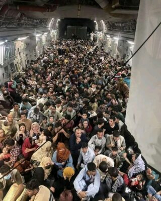 तालिबान के डर से लोग देश छोड़कर भाग रहे हैं। काबुल एयरपोर्ट पर प्लेन में चढ़ने के लिए अपनी बारी का इंतजार करते लोग।