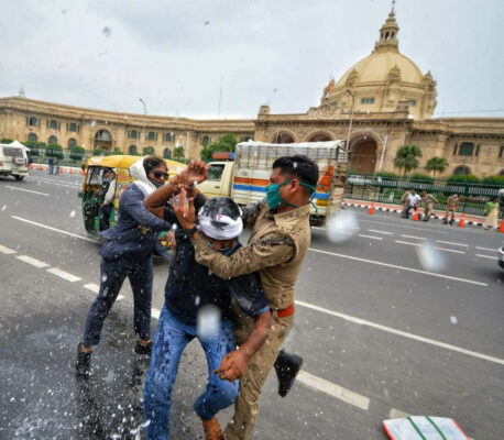 लखनऊ : विधानसभा के सामने युवक ने खुद पर मिट्टी का तेल डालकर आत्मदाह करने का किया प्रयास