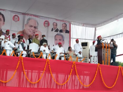 सपा अध्यक्ष अखिलेश यादव ने इस सभा में केंद्र की मोदी सरकार एवं उत्तर प्रदेश की योगी आदित्यनाथ की सरकार को जमकर घेरा है इस सभा के माध्यम से अखिलेश यादव ने भारत सरकार और उत्तर प्रदेश सरकार से कई सवाल भी किए हैं उन्होंने कहा है कि,”कोरोना काल मे भारत सरकार ने 20 लाख करोड़ का बजट राहत के लिए दिया गया था उसमें से ना तो किसी गरीब को कुछ मिला है ना किसी नौजवान को कुछ मिला है और ना ही किसानों को कुछ मिला है उस 20 लाख करोड़ के बजट का क्या हुआ वह बजट कहां गया, समाजवादी सरकार ने सभी नौजवानों को लैपटॉप बांटे थे परंतु उत्तर प्रदेश की योगी सरकार में वह लैपटॉप बांटना बंद कर दिया।