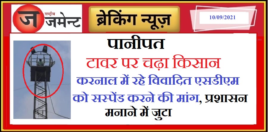 करनाल के तत्कालीन एसडीएम आयुष सिन्हा को निलंबित करने की मांग को लेकर समालखा निवासी किसान टावर पर चढ़ गया। किसान के टावर पर चढ़ते ही हड़कंप मच गया।