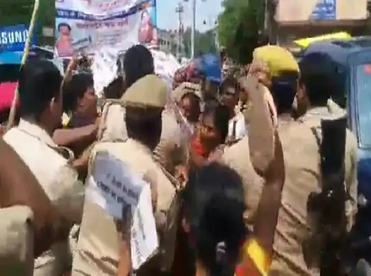 मामले की सूचना मिलने पर मौके पर पहुंची पुलिस ने राजभर समाज के नेता मुन्ना राजभर को गिरफ्तार करना चाहा, लेकिन महिलाओं ने इसका विरोध किया और जमकर नोकझोंक हुई। वहीं एक महिला ने चप्पल उठा कर पुलिसकर्मियों पर चला दिया। बावजूद इसके पुलिस ने मुन्ना राजभर को पकड़कर गाड़ी में बैठाना चाहा, लेकिन महिलाओं ने मुन्ना राजभर को गिरफ्तार करने से बचा लिया। महिलाओं और पुरुषों ने रैली निकालकर पुलिस के खिलाफ नारेबाजी करते हुए कलेक्ट्रेट पहुंच कर ज्ञापन सौंपकर न्याय की मांग की।
