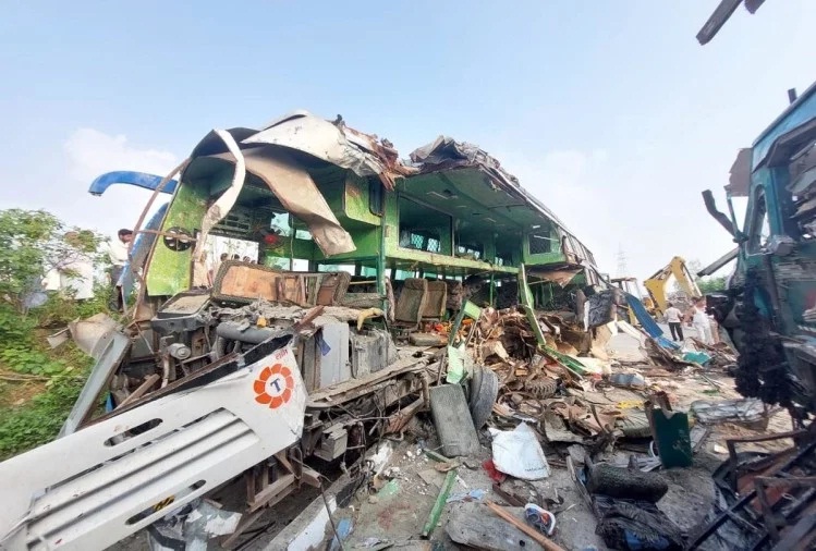 बाराबंकी में भीषण सड़क हादसा, ट्रक और बस की टक्कर में 14 की मौत