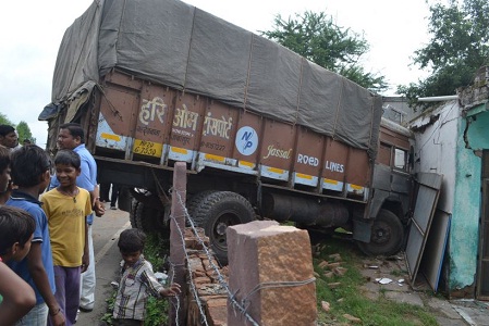 (अनियंत्रित ट्रक सड़क किनारे कच्चे मकान में रात के 11 बजे उस वक्त घुसा जब घर के सारे लोग सो रहे थे. इस हादसे में दो किशोर, एक नाबालिग और एक अन्य की जान चली गई.)