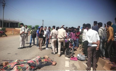 जबलपुर।  शनिवार दोपहर करीब 11:15 बजे के लगभग नेशनल हाईवे 30 खितौला मोड़ पर तेज रफ्तार वाहन ने मोटर साइकिल सवार को अपनी चपेट में ले कर करीब 10 मीटर तक घसीटते ले गया। भारी वाहन के चक्के में फंसने से महिला की दर्दनाक मौत हो गई । वहीं मोटर साइकिल सवार गंभीर रूप से घायल हो गया। मोटर साइकिल में सवार एक 10 साल की बच्ची इस दर्दनाक हादसे में बाल-बाल बच गई। हादसे की सूचना पर पहुंची पुलिस ने मर्ग कायम कर शव को पोस्टमार्टम के लिए भेजते हुए अज्ञात वाहन की तलाश शुरू कर दी है।