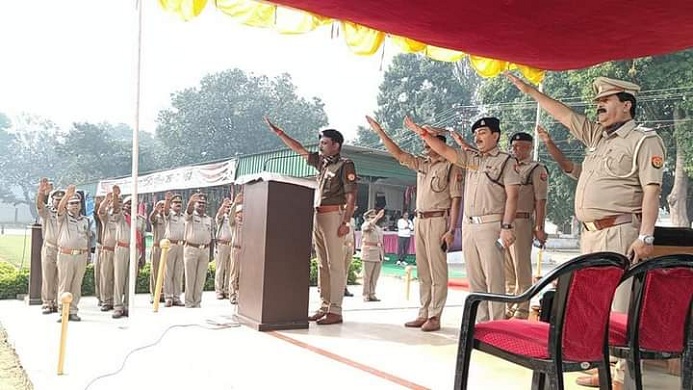 राष्ट्रीय एकता दिवस पर पुलिसकर्मियों द्वारा ली गयी राष्ट्रीय एकता व अखण्डता की शपथ