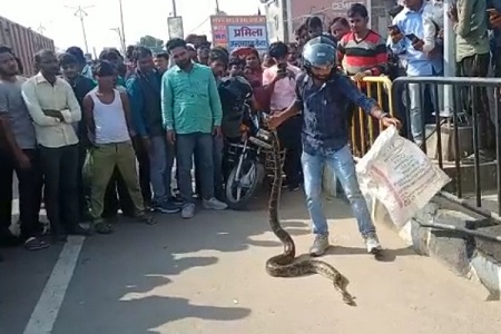 इसके बाद सैकड़ों की संख्या में लोग अजगर को देखने के लिए जुट गए। इसी दौरान किसी ने वन विभाग को सूचना दी जब तक वन विभाग की टीम मौके पर पहुंचती तब तक सड़क पर जाम लग गया। वनकर्मियों के काफी मशक्कत के बाद अजगर को रेस्क्यू किया। वनकर्मी राजेश यादव ने बताया कि टेड़वा कुटी सपा कार्यालय महराजगंज के पास से एक विशालकाय अजगर लगभग 2 मी0 लंबा को रेस्क्यू कर पकड़ी रेंज जंगल मे रेहाव नाले के पास छोड़ा गया। इस रेस्क्यू में सुरक्षा प्रभारी कासिम अली, जगदीश कुशवाहा, दीपक, मनीराम शुक्ला मौजूद रहे।