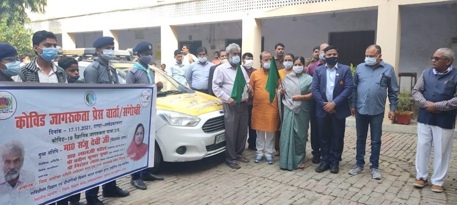 राष्ट्रीय विज्ञान एवं प्रौद्योगिकी संचार परिषद भारत सरकार एवं विकास संस्था प्रयागराज के तत्वाधान में कोरोना संक्रमण के प्रति लोगों को जागरूक करने के उद्देश्य से कोविड जागरूकता रथ यात्रा का शुभारंभ मुख्य अतिथि माननीय विधायक संजू देवी व विधायक प्रतिनिधि श्याम बाबू, विशिष्ट अतिथि प्रबंधक डॉ लाल जी पटेल ,यूथ आइकॉन प्रवीण कुमार गुप्ता ,प्रधानाचार्य रामतीर्थ विश्वकर्मा, विद्यालय प्रबंध समिति के विवेक चंद्रा ने बुधवार को हरी झंडी दिखाकर आदर्श जनता इंटर कॉलेज टांडा से जनपद अंबेडकरनगर के गावों के लिए रवाना किया ।