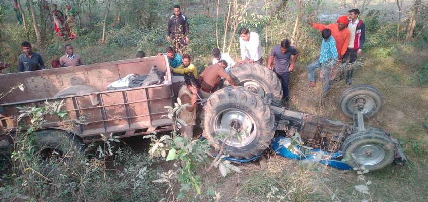 अनियंत्रित होकर ट्रैक्टर ट्राली खाई में गिरी एक की मौत, 1 घायल