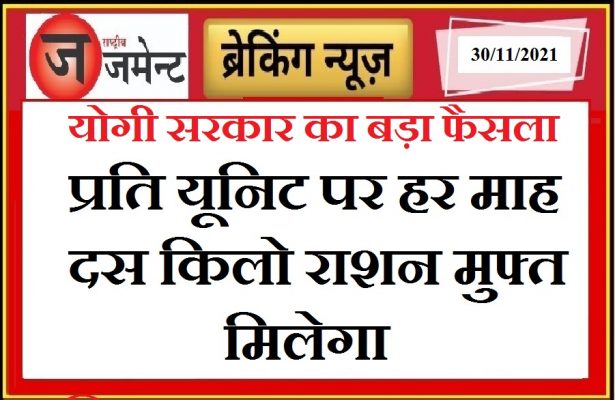 योगी सरकार का बड़ा फैसला : लाभार्थी को प्रति यूनिट पर हर माह दस किलो राशन मुफ्त मिलेगा