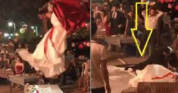 दोनों जेसीबी के बकेट में बैठे हुए नजर आ रहे है. वीडियो में दूल्हे ब्लैक कोट-पैंट पहने हुए नजर आ रहा है जबकि दुल्हन ने सफेद ड्रेस पहनी हुई है लेकिन अचानक ही इसी बीच JCB का अगला हिस्सा खुल जाता है और दूल्हा-दुल्हन काफी ऊंचाई से जमीन पर लगी हुई खाने की मेज पर जा गिरते है. ये नजारा देख शादी के फंक्शन में मौजूद सभी गेस्ट अवाक रह जाते है