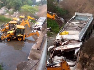 घटना की जानकारी लगते ही एसपी और कलेक्टर मौके पर पहुंच गए थे. बस गुजरात के भुज से बड़वानी की ओर जा रही थी. घटना खंडवा-बडौदा स्टेट हाइवे की है. दुर्घटना में 7 बच्चे भी घायल हुए हैं. इसमें से एक बच्चे की हालत बहुत गंभीर हैं. उसे डॉक्टरों ने इंदौर रैफर कर दिया है. बस पुलिया की रेलिंग तोड़ 15 फिट नीचे नदी में गिरी है.