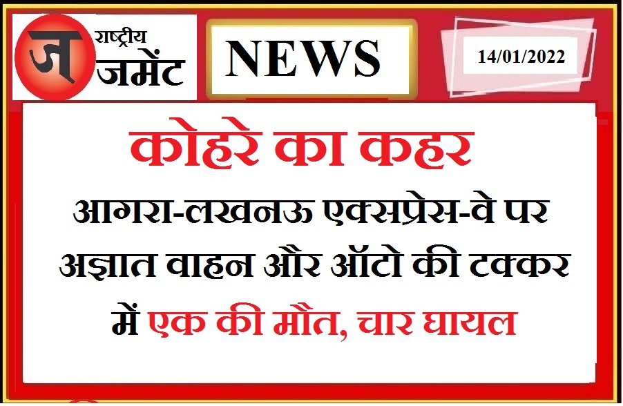 कोहरे का कहर : आगरा-लखनऊ एक्सप्रेस-वे पर अज्ञात वाहन और ऑटो की टक्कर में एक की मौत, चार घायल