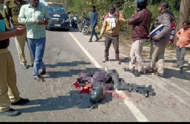 अज्ञात वाहन की चपेट में आने बाइक सवार युवक की मौके पर दर्दनाक मौत