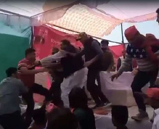 समाजवादी पार्टी के प्रत्याशी सोनू कनौजिया के समर्थन में जनसभा करने पहुंचे स्टार प्रचारक पूर्व मंत्री स्वामी प्रसाद मौर्य के सामने ही मंच पर चढ़ने को लेकर दो समर्थक गुट आपस में भिड़ गए। देखते ही देखते विवाद इतना बढ़ गया कि हाथापाई होने लगी। किसी तरह मौजूद नेताओं ने बीच बचाव किया।