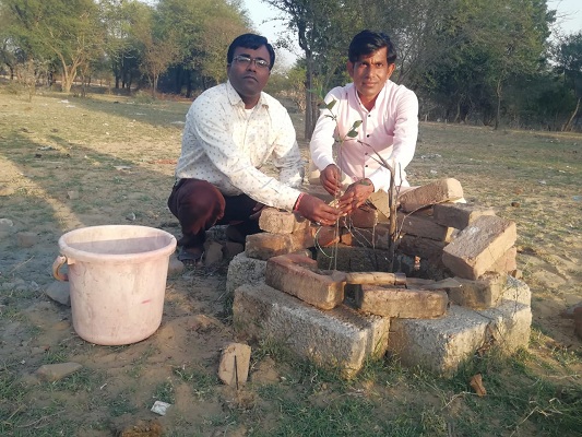 बाबा रामदेव मंदिर में लगाया पारिजात का पौधा