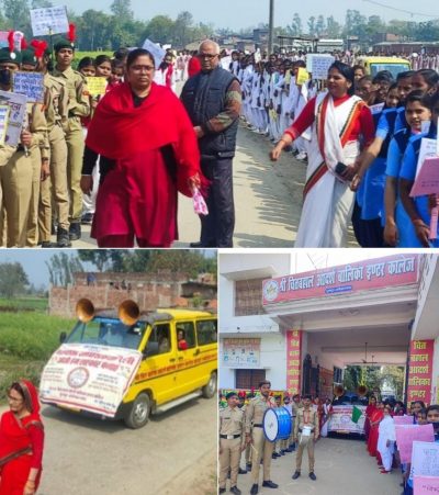 मतदाता जागरूकता रैली को विद्यालय की प्रधानाचार्या डॉ सुषमा सिंह ने हरी झंडी दिखाकर रवाना किया । इस अवसर पर विद्यालय के हजारों छात्र छात्राओं ने गाजे बाजे के साथ हाथ में स्लोगन लिखी तख्तियों एवं नारो के साथ मतदाताओं को वोट डालने के लिए जागरूक किया।