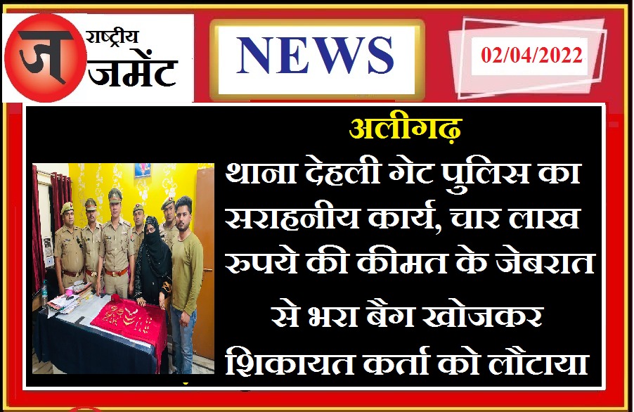 अलीगढ़ : थाना देहली गेट पुलिस का सराहनीय कार्य, चार लाख रुपये की कीमत के जेबरात से भरा बैग शिकायतकर्ता को लौटाया