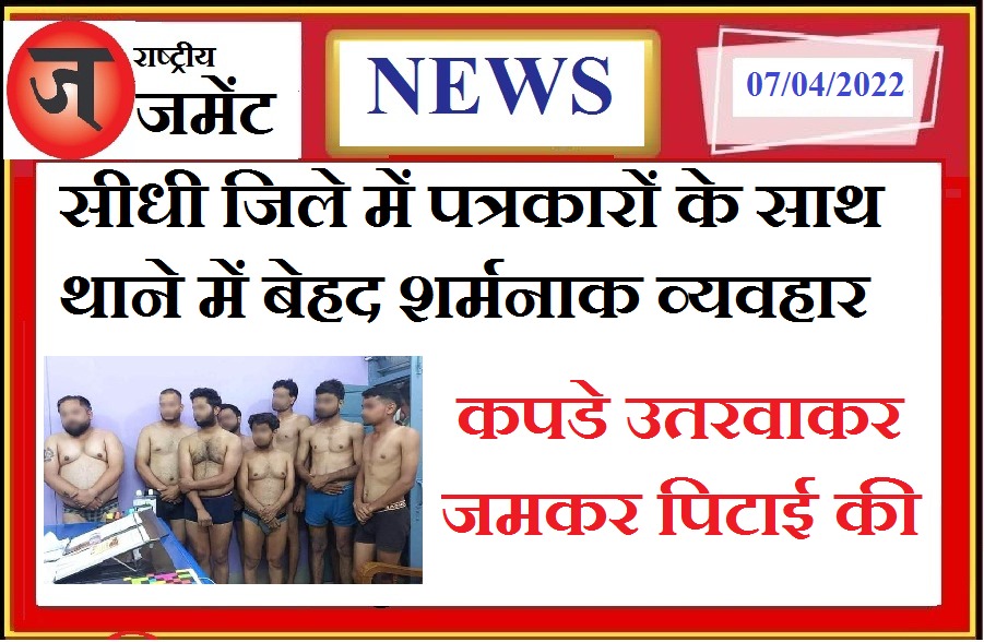 प्रदेश के सीधी जिले में एक डिजिटल पत्रकार और उसके साथियों के साथ थाने में बेहद शर्मनाक व्यवहार की खबर सामने आई है। पुलिस ने थाने में पत्रकार और उसके साथियों को न सिर्फ अर्धनग्न होने पर मज़बूर किया बल्कि उनकी जमकर पिटाई भी की। सोशल मीडिया पर सीधी पुलिस की इस करतूत पर तीखी नाराजगी सामने आ रही है ।