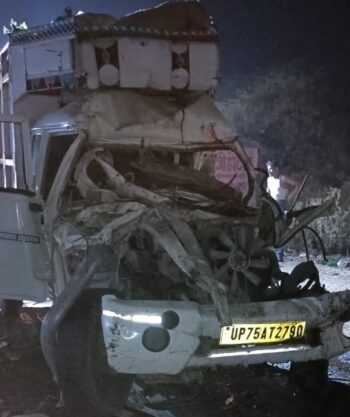 पिकअप और ट्रक कंटेनर में भिड़ंत 4 लोगो की मौत, 5 गंभीर रूप से घायल