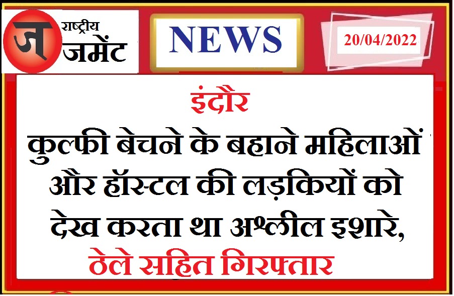 इंदौर भंवरकुआं पुलिस में एक गोपनीय शिकायत के आधार पर ऐसे आरोपी को गिरफ्तार किया है जो क्षेत्र की कॉलोनियों में घुसकर कुल्फी बेचने के बहाने महिलाओं से और हॉस्टल की लड़कियों को देख कर अश्लील इशारे करता था। पुलिस ने मामला दर्ज कर आरोपी को गिरफ्तार किया है।