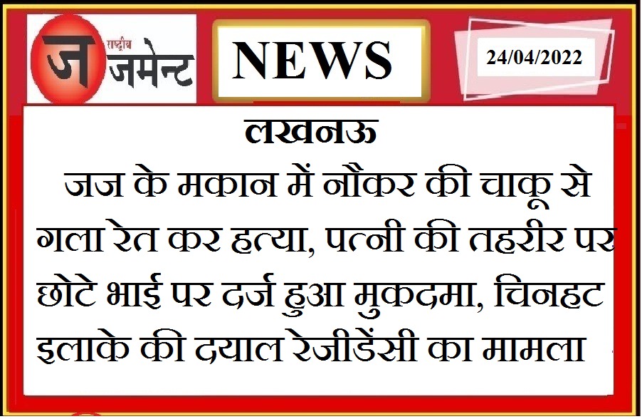 चिनहट के दयाल रेजिडेंसी में रहने वाले एक जज के मकान में उनके ही नौकर मोहित साहू (32) की गला रेतकर हत्या कर दी गई। रविवार सुबह उसका खून से लथपथ शव मकान के अंदर मिला। उसके गले मे चाकू से कई वार किए गए थे।