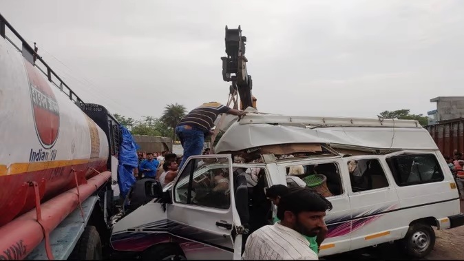 बहराइच में दर्दनाक सड़क हादसा : यात्रियों से भरी टाटा विंगर कार और टैंकर में टक्कर, तीन लोगों की मौत