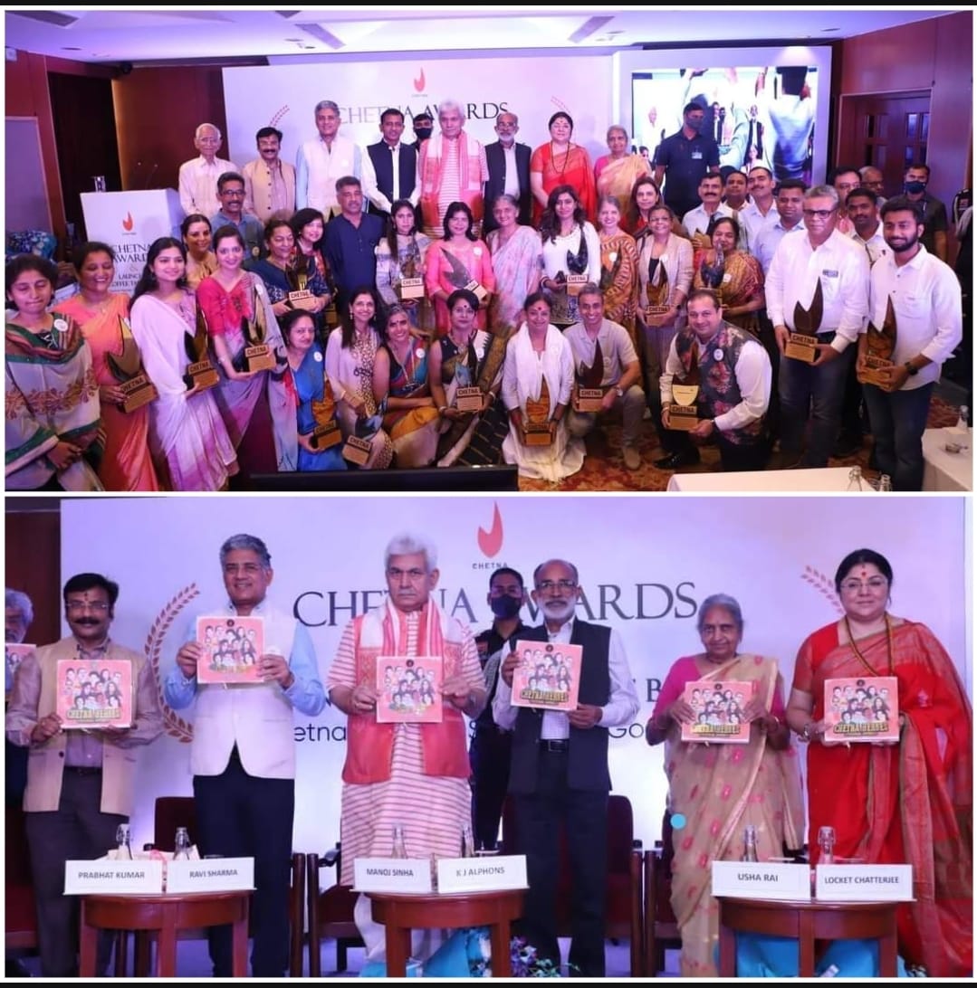 देश में सामाजिक परिवर्तन में योगदान करने वालों को मिशन चेतना ने रविवार यानी 22 मई को इंडिया हैबिटेट सेंटर, नई दिल्ली में आयोजित एक पुरस्कार समारोह में सम्मानित किया। कार्यक्रम में जम्मू-कश्मीर के उपराज्यपाल मनोज सिन्हा ने ‘चेतन हीरोज’ – वास्तविक जीवन के नायकों को पुरस्कार प्रदान किए और उनके कार्यों के आधार पर “चेतना हीरोज – स्प्रेडिंग गुडनेस” पर एक कॉफी टेबल बुक भी जारी की। ‘कॉफी टेबल बुक’ में 32 चेतना नायकों की रूपरेखा है, जिनकी विशिष्ट परोपकारी गतिविधियों ने लगभग एक करोड़ वंचित भारतीयों के जीवन में बदलाव लाने में महत्वपूर्ण भूमिका निभाई।