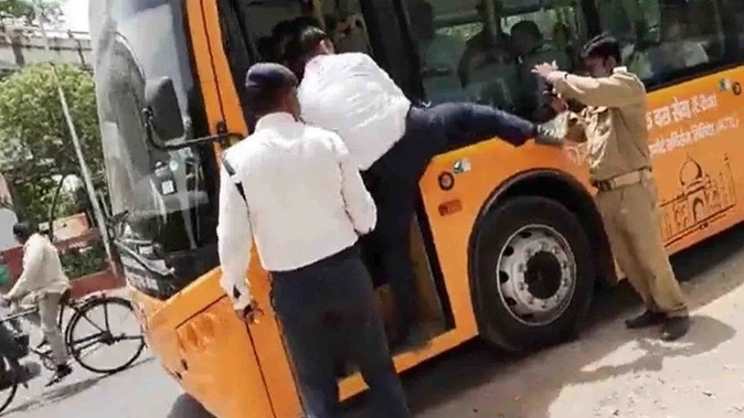 ई-बस चालक को लात मारने वाला ट्रैफिक हेड कांस्टेबल भुवनेश बाबू नौकरी से बर्खास्त