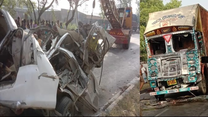 तेज रफ्तार कंटेनर ने पीछे से एसयूवी में मारी जोरदार टक्कर, 4 की मौत