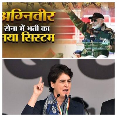 प्रियंका गांधी ने अग्निपथ के लिए किया ट्विट-“ ऐसा लग रहा है “नो रैंक, नो पेंशन” की स्कीम लागू की है”