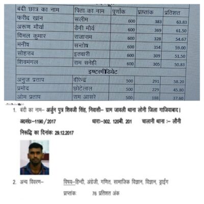 जहां है प्रतिभा वहाँ सजा भी पिछे – क़ैदीयों ने हाईस्कूल में 76% इंटर में 72% अंक प्राप्त करके दिखायी योग्यता
