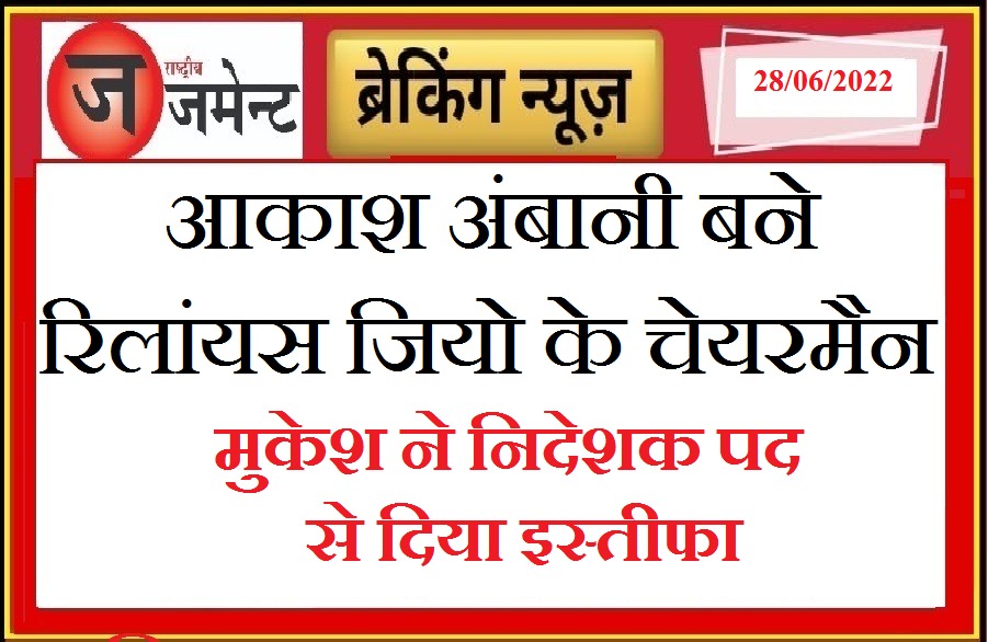 27 जून को हुई बोर्ड ऑफ डायरेक्टर्स की बैठक में मुकेश अंबानी ने तत्काल प्रभाव ने कंपनी के निदेशक पद से इस्तीफा दे दिया है। जियो की ओर से इस बारे में स्टॉक एक्सचेंज को सूचना दी गई है।