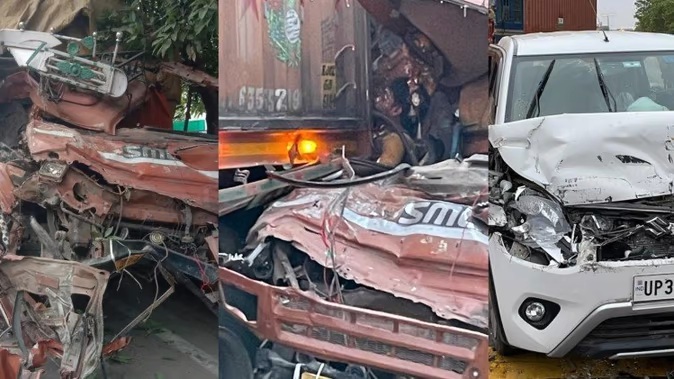 तेज रफ्तार डीसीएम पीछे से कंटेनर में जा घुसी, चालक की मौत