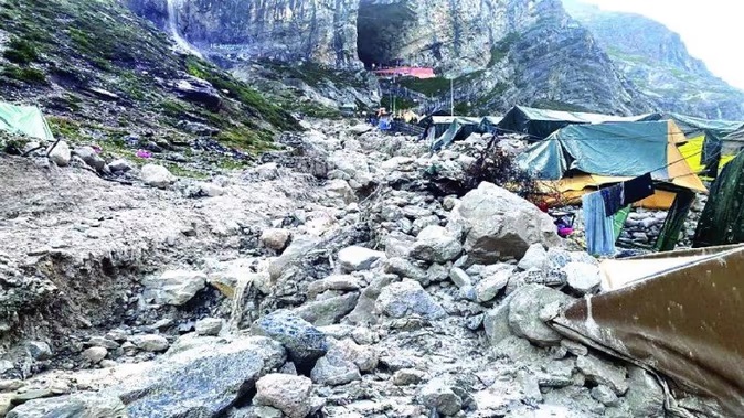 भारी बारिश की चेतावनी के बीच अमरनाथ गुफा के पास बादल फटने से 16 श्रद्धालुओं की मौत हो गई है, जबकि करीब 40 लोग लापता हो गए हैं। बादल फटने के बाद पहाड़ से आया सैलाब श्रद्धालुओं के लिए लगाए गए तीन लंगरों समेत करीब 40 टेंट बहा ले गया। सैलाब गुफा के सामने श्रद्धालुओं के लिए बनाए गए टेंटों के बीचों-बीच निकला। सेना, एनडीआरएफ व एसडीआरएफ समेत आपदा प्रबंधन से जुड़ीं कई टीमें राहत एवं बचाव कार्य में जुटी हैं।
