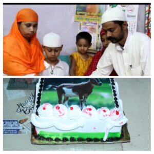 बकरी के चित्र वाला केक काटकर शेरवानी ने दी अनोखी कुर्बान