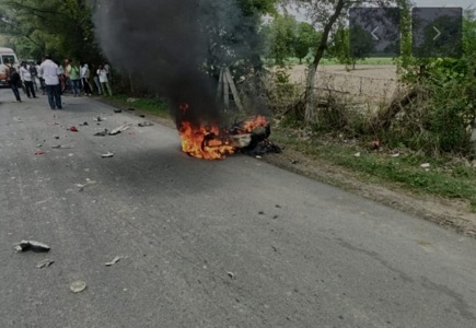 दैनिक राष्ट्रीय जजमेंट न्यूज़ – मथुरा बलदेव थाना क्षेत्र के अंतर्गत बलदेव पब्लिक स्कूल के समीप वैगनार कार और बाइक में आमने-सामने की भिड़ंत हो गई घटना के बाद बाइक में आग लग गई और 2 लोग गंभीर रूप से घायल हो गए घटना के संबंध में प्रत्यक्षदर्शी सुनील के द्वारा बताया गया कि बलदेव की तरफ से बाइक आ रही थी और मथुरा से कार आ रही थी तभी अचानक से दोनों में भिड़ंत हो गई