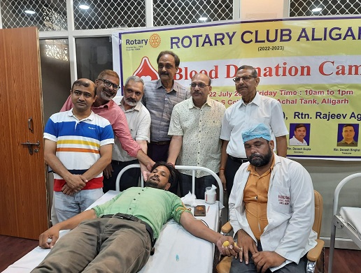 रोटरी क्लब अलीगढ़ द्वारा लगाया गया विशाल रक्तदान शिविर