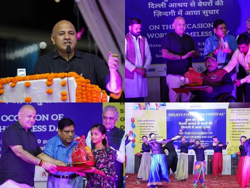 दिल्ली सरकार ने ‘विश्व बेघर दिवस’ पर दिल्ली के प्रथम स्लम फेस्टिवल “हुनर की पुकार, दिल्ली आश्रय से बेघरों के जिंदगी में सुधार” कार्यक्रम की शुरुआत सराय काले खां स्थित रैन बसेरा परिसर से की गई। बेघरों के मुद्दों को मुख्यधारा में लाने और आश्रयों में सोने वाले बेघर निवासियों की चुनौतियों एवं जरूरतों के बारे में जागरूकता फैलाने के उद्देश्य से इस कार्यक्रम का आयोजन किया गया। यह आयोजन का उद्देश्य दिल्ली में बेघरों की सफलता की कहानियों को लोगों तक पहुंचाना है, जो बेघर होने के बावजूद जीवन की चुनौतियों पर काबू कर सफलता के शिखर पर पहुंचे हैं। अलग अलग समुदायों से युवाओं, सामाजिक संस्था और 500 से अधिक लोगों की सहभागिता से कार्यक्रम सफ़लता रहा।