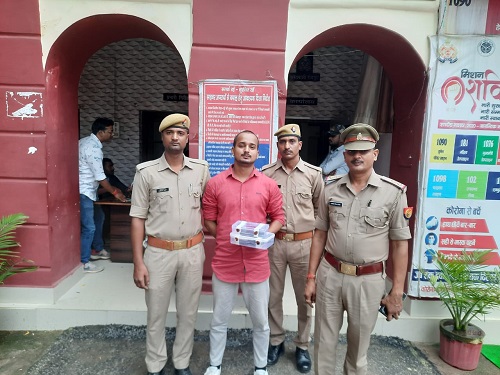 गाजीपुर । पुलिस अधीक्षक द्वारा अपराध की रोकथाम,वांछित अभियुक्तो व शातिर अपराधियों की गिरफ्तारी के लिए चलाये जा रहे अभियान चलाने का दिया आदेश, अपर पुलिस अधीक्षक नगर गाजीपुर व क्षेत्राधिकारी सैदपुर के मार्गदर्शन में प्रभारी निरीक्षक सैदपुर के कुशल नेतृत्व मे,उ0नि0 हैदर असी मंसूरी ने मुखबिर की सूचना पर कस्बा सैदपुर एक व्यक्ति को तमन्चे कारतूस के साथ गिरफ्तार किया ,, जिसकी पहचान अरमान पुत्र शमीम अहमद निवासी वार्ड नं0 09 राजीव नगर कस्बा व थाना सैदपुर गाजीपुर उम्र 24 वर्ष के रूप मे हुई। अभियुक्त के पास से 01 तमंचा .315 बोर व 01 जिन्दा कारतूस .315 बोर, एक मोबाईल एन्ड्राईड अप्पो व जामा तलाशी से 2630 रुपये नगद के गिरफ्तार कर जेल भेजा जा रहा है । अभियुक्त एक शातिर अन्तर्जनपदीय अपराधी को पुलिस ने किया गिरफतार ।