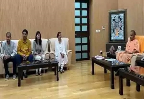 लखनऊ :मुख्यमंत्री योगी आदित्यनाथ ने गुरुवार को लखनऊ में मुख्यमंत्री आवास पर प्रसिद्ध हास्य कलाकार राजू श्रीवास्तव के परिजनों से मुलाकात की।मुख्यमंत्री ने उनके परिजनों के साथ राजू श्रीवास्तव के संस्मरण साझा किये। उनकी पत्नी शिखा श्रीवास्तव ने राजू श्रीवास्तव के कार्यों को आगे बढ़ने में मुख्यमंत्री योगी से मार्गदर्शन के लिये निवेदन किया।
